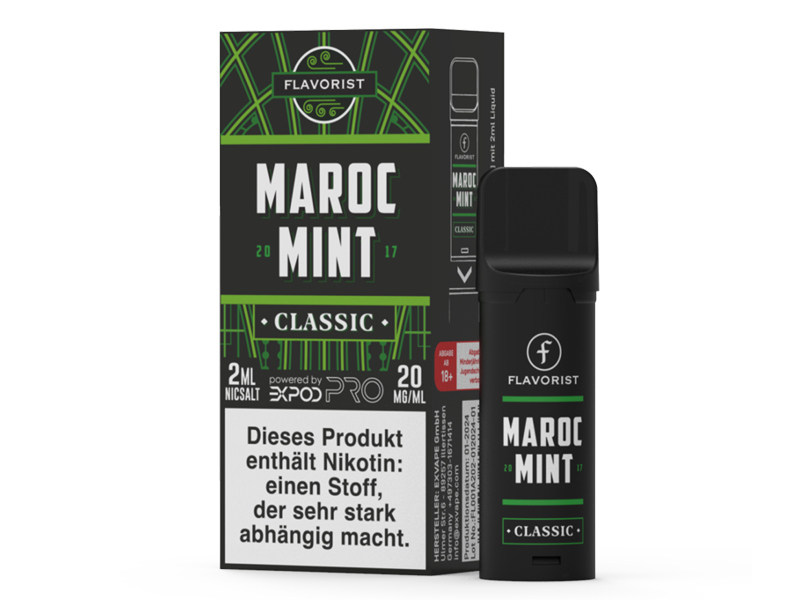 Flavorist POD - "Maroc Mint" (Minze, Kaugummi) - E-Shisha 20mg - 600 Züge - einzeln